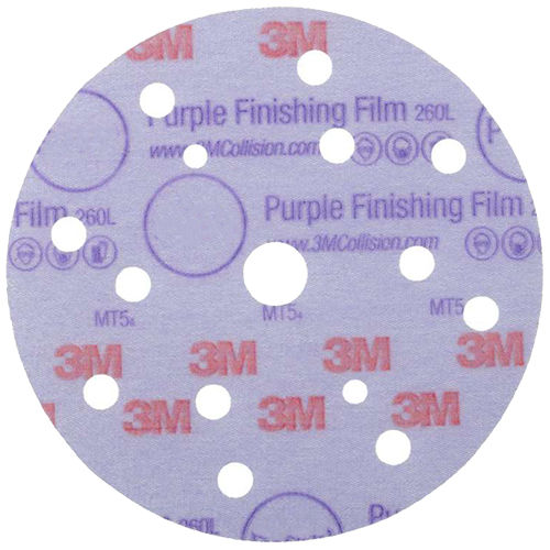 Микротонкие абразивные диски 3М™ Hookit™ серии 260L, 15 отверстий P1500 Микротонкие абразивные круги для сухой шлифовки с помощью шлифовальной машинки разработаны для удаления мелких дефектов лакокрасочного покрытия, шлифовки грунта и матирования краски и лака. Абразив рекомендуется применять на орбитально-эксцентриковых машинах с малым ходом эксцентрика с использованием мягких подложек, что обеспечит хорошее прилегание абразива к труднодоступным контурам поверхности автомобиля. Отзывы пользователей