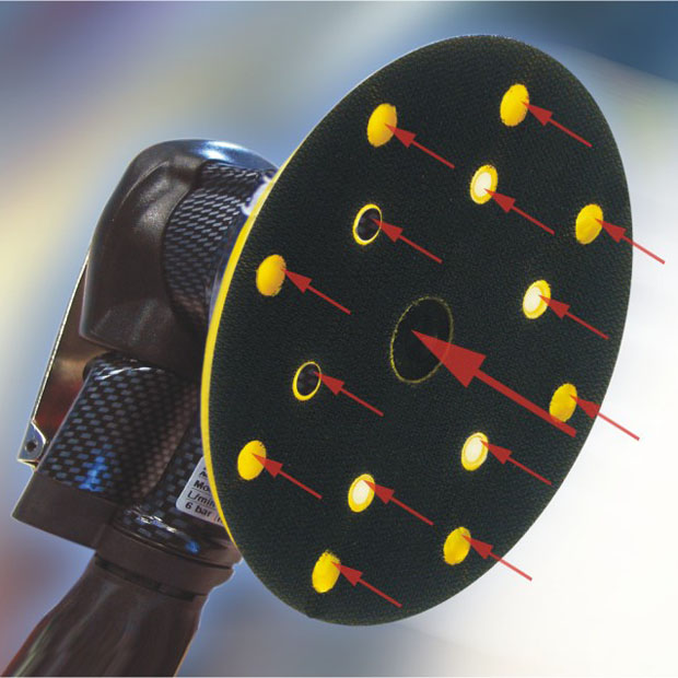 Рабочие круги 14+1 отверстий в комплекте с абразивными дисками серии К555 или Классик предназначены для шлифования поверхности в автомобильной, мебельной и других отраслях. Усиленная конструкция круга и прочная липучка позволяют работать даже в самых трудных условиях. Система непосредственного отсоса делает возможным работу с дисками с различными конфигурациями отверстий 6+1, 8+1 и 14+1, использование же поперечных отсасывающих отверстий дополнительно помогает осуществлять отсос пыли с края круга.