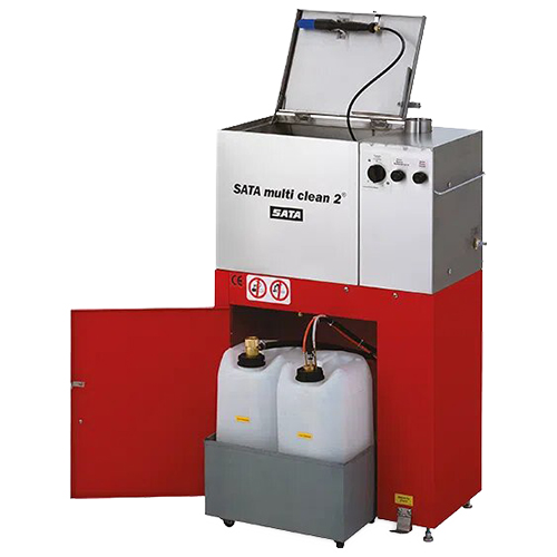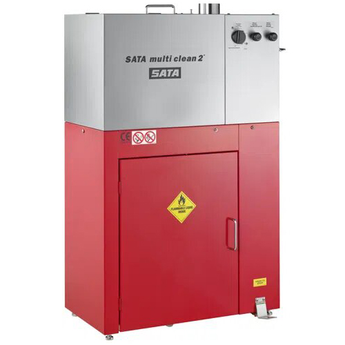 Окрасочные пистолеты необходимо тщательно очищать не реже одного раза в день и промывать после каждой покраски. Чтобы сделать это осторожно, удобно и экономично, можно использовать SATA multi clean 2 – высокопродуктивный моечный аппарат с местом для ручной мойки и вытяжным устройством.