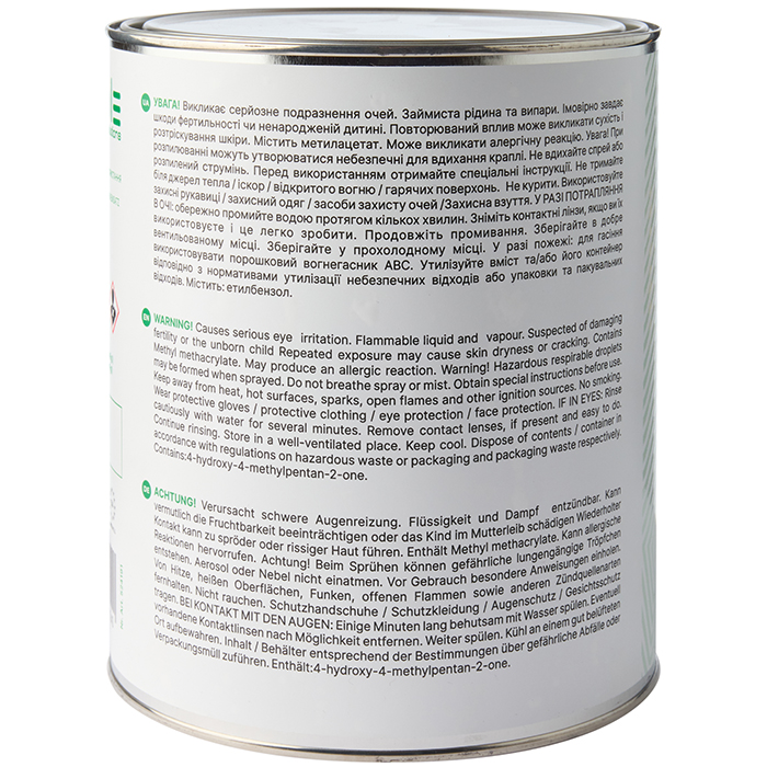MULTIFUNCTIONAL PRIMER можно наносить непосредственно на голый металл, что создаст отличную антикоррозионную защиту. Очень хорошо изолирует трудные поверхности и места покрытые шпатлёвкой от слоёв базовых красок и покровных лаков. Дополнительным плюсом является возможность нанесения грунта MULTIFUNCTIONAL PRIMER методом «мокрым по мокрому», без необходимости шлифования.