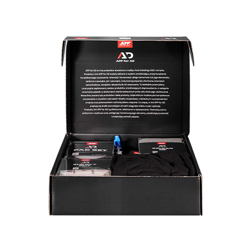 APP for AD GIFT BOX это набор продуктов из линейки APP for AD, предназначенный для полировки лаков. Содержит топовые продукты - пасты, губки, полировальные диски, меха, а также изопропиловый спирт в удобной упаковке с триггером. Он удовлетворит как профессионалов, так и новичков в работе, связанной с комплексным уходом по лаке. Элегантная упаковка делает набор идеальным продуктом в подарок.