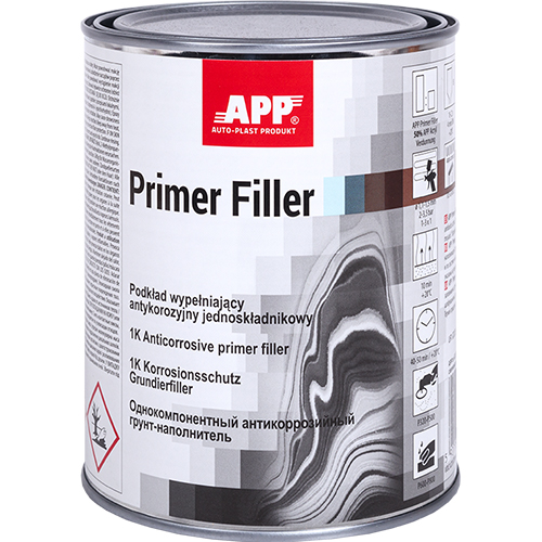 APP 1K Primer Filler однокомпонентный быстросохнущий грунт-наполнитель с активной антикоррозийной защитой. Имеет очень хорошую адгезию к железу, стали, оцинкованной стали и алюминию, а также к некоторым пластмассам, используемых в автомобилях. Может быть покрыт всеми типами обычных 1К и 2К и водоразбавляемых лаков. Предназначен для работы по системе мокрый по мокрому, нанесении классическим методом со шлифованием, а также для системы микро ремонта типа SMART. Отзывы пользователей
