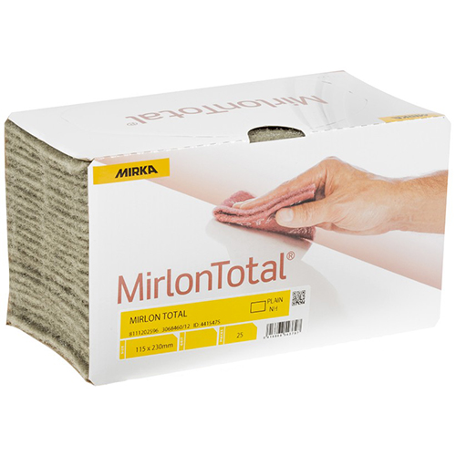 Разработанный с использованием инновационной технологии насыпки Total Coating™ , Mirlon Total имеет повышенную по сравнению с материалом Mirlon агрессивность, работает быстрее и дает более плотную текстуру поверхности. Благодаря открытой и эластичной структуре и укрепленным волокнам обладает высокой прочностью и большим ресурсом работы. Применяется как в сухом, так и во влажном режиме.
