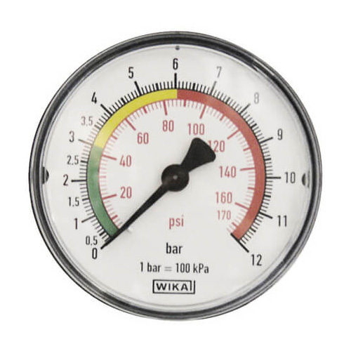 Манометр со шкалой от 0 до 12 бар (0-170 psi), крепление осевое М 1/8″ на тыльной стенке, диаметр 40 мм. Отзывы пользователей