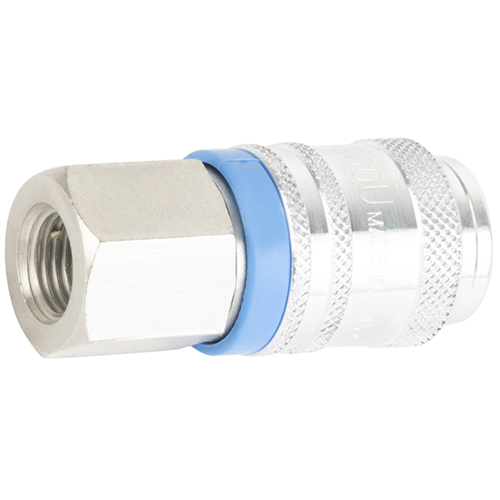 Walcom X300 U — универсальные быстроразъёмные соединения с внутренней резьбой: 1/4″, 3/8″ и 1/2″. Применяются для соединения различных частей пневмосистем. С одной стороны фитинг имеет внутреннюю резьбу, с другой быстросъемное соединение — рапид «мама». Данные пневматические быстросъемы отличаются тем, что совместимы со стандартами D, I, S, USA. Корпус выполнен их никелированной латуни и алюминия, воздушный клапан из латуни, уплотнение из NBR — резины. Соединения обладают высокой надежностью и герметичностью. Отзывы пользователей