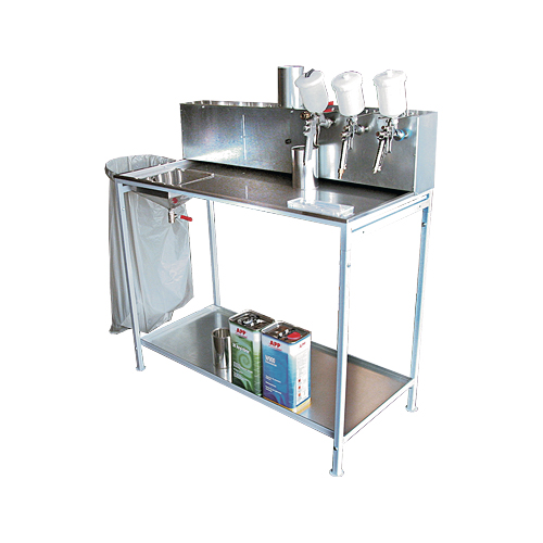 Стол маляра является основным оснащением покрасочной мастерской. Гарантирует быстрое и чистое выполнение покрасочных работ. Характеристика: вытяжка испарений, столешница (560 x 1180 мм) сделана из нержавеющей стали, высота стола 960 мм, к столу подведен сжатый воздух, после окончания мытья можно проверить действие распылительного пистолета, 3 вешалки для пистолетов, камера для мытья пистолетов, наполненная растворителем, Небольшие элементы можно оставлять на сушке, При помощи спускного клапана можно выливать грязный растворитель, Имеется полка для покрасочных материалов. Отзывы пользователей