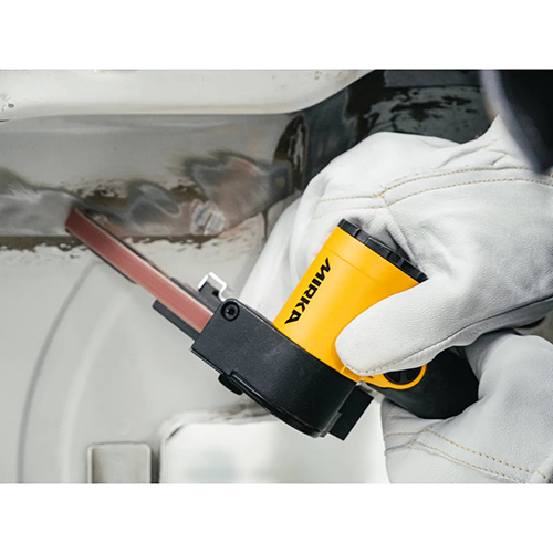 Пневматический ленточный шлифовальный напильник Mirka PBS (без пылеотвода) — оптимальный инструмент для удаления и зачистки сварных швов, ржавчины и краски. Максимально простая регулировка скорости ленты и угла наклона шлифовальной части, а также быстрая замена ленты. Скорость вращения ленты плавно регулируется с помощью переключателя, дополнительных инструментов не требуется. Механизм регулировки натяжения ленты позволяет легко и быстро заменить ее. Угол наклона шлифовальной насадки регулируется при помощи шестигранного ключа, который хранится в специальном слоте на ручке инструмента. Удобная прорезиненная рукоятка гарантирует комфортное положение инструмента в руке. Машинка разработана с заботой о здоровье и комфорте пользователя и окружающих, поскольку имеет низкий уровень вибраций и шума. Отзывы пользователей