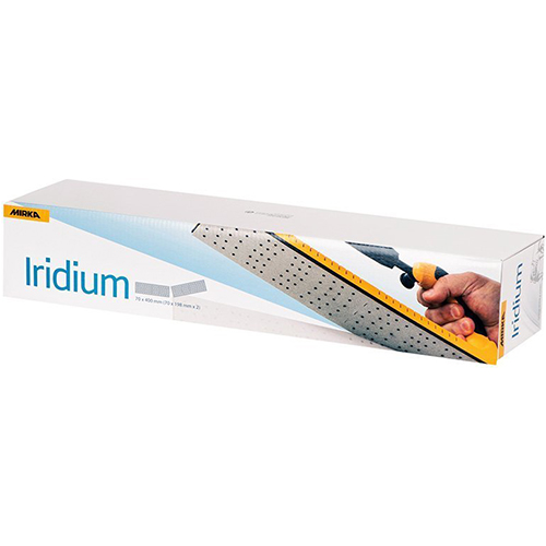 Абразиваня полоска IRIDIUM 70х400 P240 Iridium – премиальный абразив на бумажной основе для различных шлифовальных операций. Оптимизированный для высокоскоростного и эффективного шлифования. Смесь керамических зерен и оксида алюминия на эластичной бумажной основе с прецизионной насыпкой предотвращает забивку и уменьшает образование комков. Абразив фактически отталкивает пыль и долго служит, поскольку долго сохраняет первичную агрессивность. Эффективное пылеудаление благодаря комбинации отверстий Multihole для дисков и полосок. Iridium показывает Iridium. Увеличьте скорость.Абразив нового поколения для профессионалов финишной обработки поверхности. Встречайте наш новый абразив на бумажной основе Mirka Iridium®, произведенный по новейшим технологиям и оптимизированный для быстрого и эффективного шлифования. Высокая скорость работы Iridium позволяет быстро получить гладкую финишную поверхность. Благодаря новейшей технологии прецизионной насыпки зерна абразив долго служит; он фактически отталкивает пыль, поэтому дольше сохраняет свою первичную агрессивность. Эффективное пылеудаление осуществляется через новую комбинацию отверстий Multihole. Просто поставьте и работайте. Iridium показывает превосходные результаты при шлифовании как мягких, так и твердых поверхностей. Неважно, что вы шлифуете - пластик, металл, древесину или композиты - все равно вы финишируете первым. Увеличьте скорость вместе с Iridium.