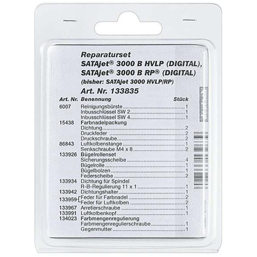 133835Ремкомплект подходит для моделей SATAjet 3000 B HVLP (DIGITAL), SATAjet 3000 B RP (DIGITAL). Отзывы пользователей