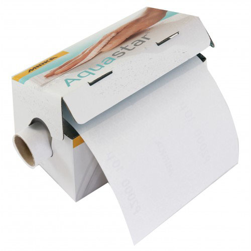 AQUASTAR 115 х 140 мм - 100 перфорированных листов в рулоне P2000 Aquastar - инновационный запатентованный абразив для влажных и сухих шлифовальных операций вручную. Материал имеет прочную эластичную пленочную основу, на которую абразивное зерно нанесено уникальным способом в виде специального узора, что придает гибкость материалу и обеспечивает эффективный отвод воды и продуктов шлифования, минимизируя забивку абразива. Благодаря своей гибкости, долговечности и водонепроницаемости Aquastar отлично подходит для шлифовальных операций с водой, не требуя при этом предварительного замачивания. Отзывы пользователей