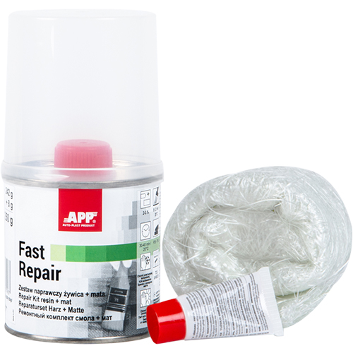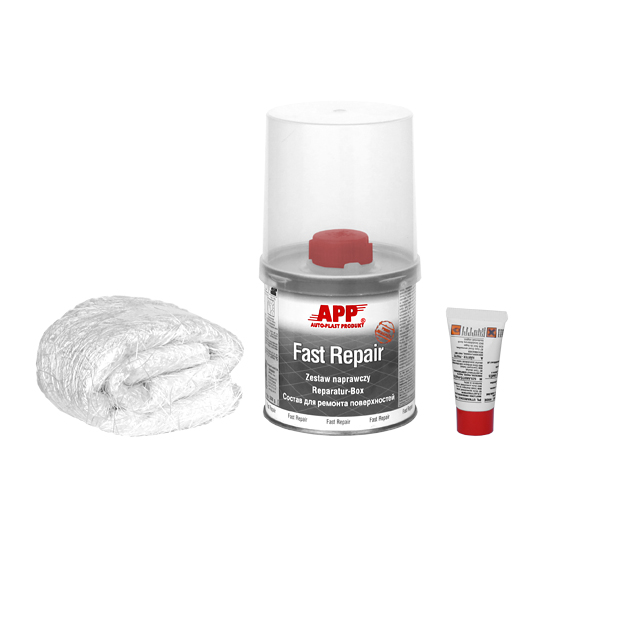 Состав для ремонта поверхностей Fast Repair Состав для ремонта поверхностей и ламинирования предназначен для заполнения больших дефектов материала, перфорации поверхности и укрепления мест, ослабленных коррозией. Благодаря отличной адгезии к регенерируемой поверхности состав может быть использован как для ремонта коррозионных разрушений листового металла, так и для труб, водного и туристического оборудования, изготовленных из металлических элементов и ламината. Полученная благодаря составу структура обладает исключительно большой стойкостью к механическим нагрузкам, колебаниям и вибрации. Покрывающий слой также устойчив к повышению температуры, водействию масла, смазок и бензина. Состав для ремонта включает в себя полиэстеровые смолы, отвердитель, мат стекловолокна с размером поверхности 0,36 м2. Отзывы пользователей