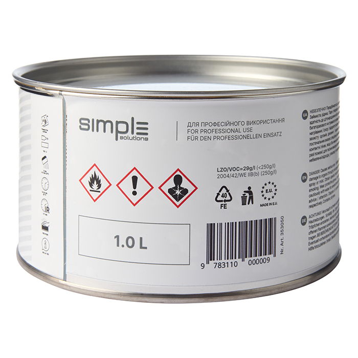 Очень мягкая наполняющая полиэфирная шпатлёвка премиум класса для кузовного ремонта. Произведена согласно самым новым технологиям. Обладает минимальной поверхностной вязкостью, благодаря чему легко шлифуется. Отлично держится на вертикальных поверхностях, даже при нанесении толстым слоем.