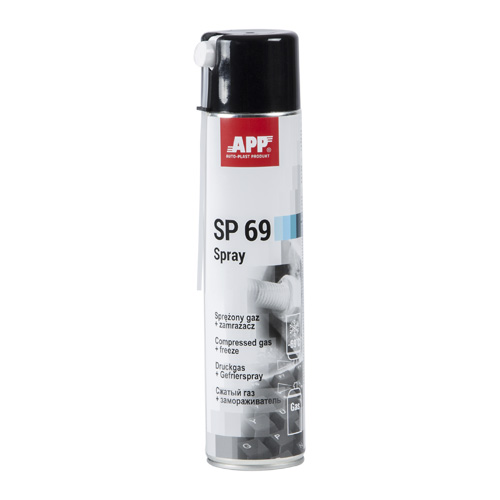 Баллон APP SP 69 Spray находится под давлением и содержит сжатый воздух и газ-пропеллент. APP SP 69 это продукт 2 в 1 очищает и замораживает. При использовании баллона в положении клапаном вверх из него под большим давлением будет выдуваться воздух, позволяющий удалять пыль и другие загрязнения. Дополнительная трубка длиной 15 см с аппликатором позволяет наносить препарат в труднодоступных местах. При использовании баллона в перевернутом положении (клапаном вниз) содержимое SP 69 позволит снизить температуру элементов в ходе сборки или демонтажа до -69°C. Отзывы пользователей