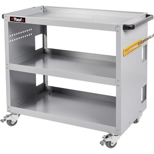 NTools 3S Heavy - это надежная и большая тележка для мастерских с очень прочной конструкцией. Предназначена для использования в рихтовочных, малярных и столярных мастерских. Служит для хранения и транспортировки инструментов и различного оборудования в мастерских. Имеет 3 глубокие и вместительные полки. ПРЕИМУЩЕСТВA: - надежная конструкция - универсальное применение - большая грузовместимость - вместительныеи большие полки - колеса с резиновым ободом и тормозами Отзывы пользователей