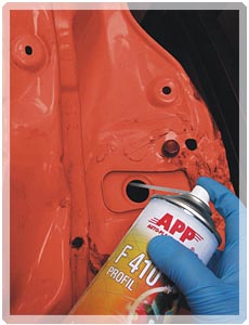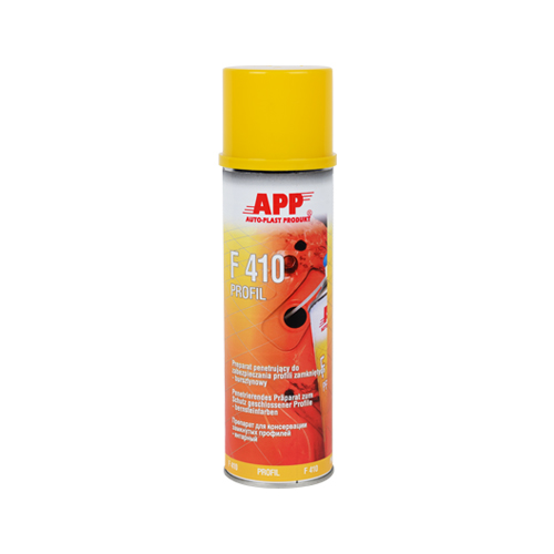 АРР F 410 Aerozol - антикоррозионный эластичный препарат на базе воска и насыщенных добавок длязащиты замкнутых профилей и трудно доступных мест кузова автомобиля. Имеет сильные проникающие и водоотталкивающие свойства. После непродолжительной сушки надолго остается эластичным и липким защитным слоем. Оптимальная толщина подсохшего слоя: ~1 Орт. Тест устойчивости на концентрацию соли (DAM 39:1): >96 часов. Отзывы пользователей