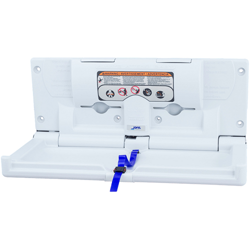 Откидной детский пеленальный столик для настенного горизонтального крепления в санузлах. Используется для замены памперсов у детей оснащен ремнём безопасности. Столик крепится к стене 4 шурупами, выдерживает нагрузку до 20 кг, имеет отсек для размещения гигиенических салфеток, складывается и надежно фиксируется в обоих положениях.