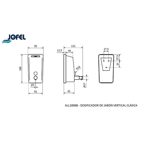 Герметичный корпус из нержавеющей стали не только предотвращает случайное протекание раздаточного материала, но и обладает высокими ударопрочными показателями. Дозатор запирается на ключ, что предотвращает случайное раскрытие корпуса. Также оснащен смотровым окном для более удобного контроля уровня расходного материала.Лучше всего размещать диспенсер для мыла наливной в зонах среднего и низкого уровня посещаемости. При небольшом объеме раздатчика, в зонах высокой посещаемости может возникнуть необходимость в более частой дозаправке расходного материала.Отличительные особенности диспенсера для жидкого мыла Jofel ALL1006B: