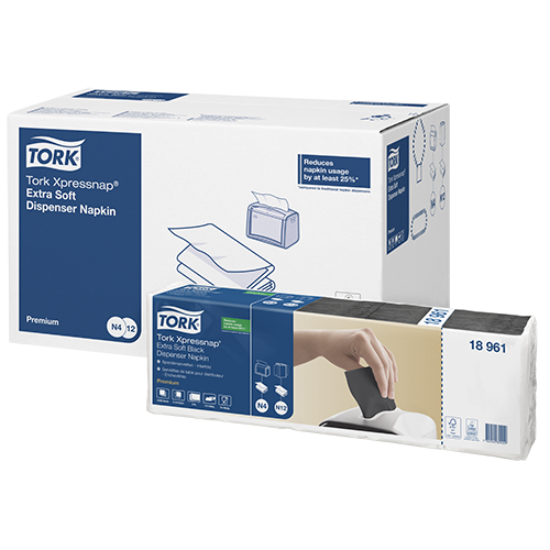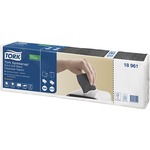 Двухслойные черные салфетки для использования в диспенсерах системы Xpressnap®. Система Tork Xpressnap® гарантирует значительно сокращение расхода салфеток по сравнению с традиционными диспенсерами. Снижение расхода сокращает количество отходов и мусора. Диспенсерные салфетки Tork Xpressnap® - прекрасное решение для заведений, которые ценят удобство, экономию и качество.