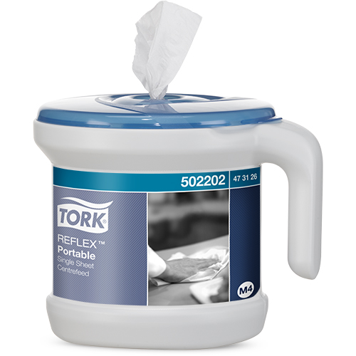 Переносной диспенсер Tork Reflex™ с центральной вытяжкой — идеальное решение, когда по роду выполняемых работ требуется перемещаться из одной рабочей зоны в другую, а протирочный материал должен всегда быть под рукой. Полистовой отбор позволяет контролировать расход, обеспечивая до 37% экономии по сравнению с традиционными системами с центральной вытяжкой.