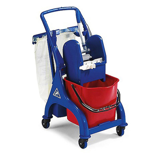 Уборочная тележка "VEGA" представляет собой единую пластиковую раму с колесами диаметром 80мм и ведром объемом 25л. U-образная ручка тележки имеет дополнительные элементы, усиливающие конструкцию. Тележка оборудована отжимающим устройством роликового типа с валом 53мм. "Deep" без дна., держателем для мусорных пакетов (объем пакета 60л) и пластиковым крюком.