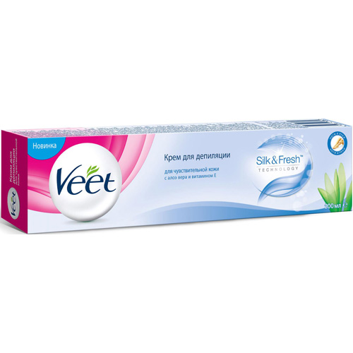 Крем Veet для чувствительной кожи содержит Алоэ Вера и Витамин Е. Витамин Е является естественным антиоксидантом, замедляющим старение клеток и устраняющим воспалительные процессы на коже. Алоэ Вера обладает заживляющим действием и способствует восстановлению естественного баланса влаги в коже. Крем содержит тиогликолевую соль калия. Это вещество позволяет ослабить связь между кератиновыми фибриллами волоса.
