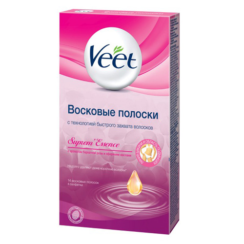 Восковые полоски для депиляции Veet для чувствительной кожи зоны подмышек и линии бикини содержат Масло миндаля и Витамин Е. Витамин Е, является естественным антиоксидантом, замедляющим старение клеток и устраняющим воспалительные процессы на коже. Миндальное масло регулирует водный баланс кожи, активизирует процесс регенерации клеток, оказывает противовоспалительное, регенерирующее и тонизирующее действие. Отзывы пользователей