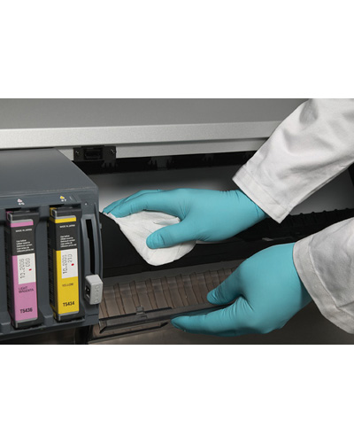 С текстурированной поверхностью кончиков пальцев, без талька, с рельефной манжетой, пригодны для контакта с продуктами, в удобной раздаточной коробке.