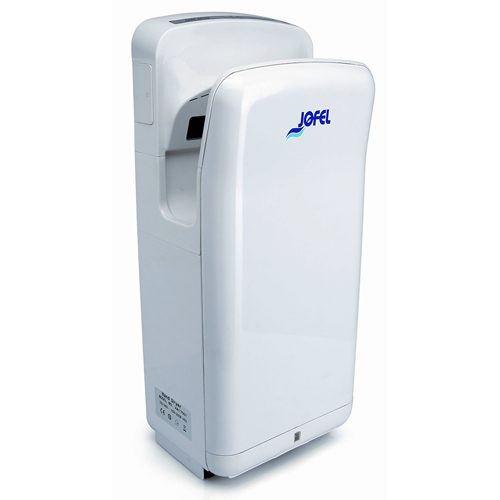 Скоростная сушилка для рук Jofel. Высушивает руки почти мгновенно мощным потоком воздуха (342 км/ч). Может сушить как холодным так и тёплым воздухом.