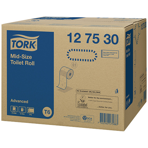 Туалетная бумага Tork Mid-size в миди-рулонах мягкая и приятная на ощупь. Для использования в диспенсерах Tork для туалетной бумаги Mid-size в миди-рулонах - инновационная системе с автоматической заменой рулона в диспенсере. Компактный размер при большой вместимости позволяет сократить время на обслуживание в 7 раз! Диспенсер вмещает 2 рулона туалетной бумаги, запасной рулон всегда остается в наличии. Емкость диспенсера — до 270 м бумаги.