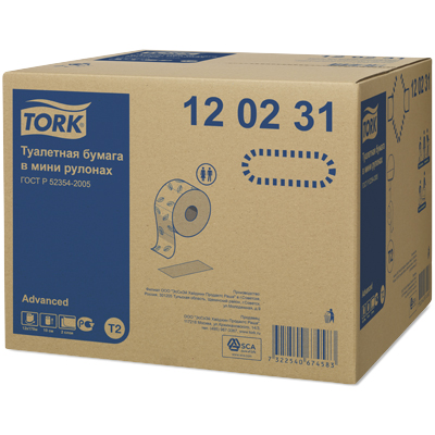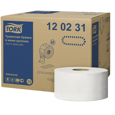 Двухслойная туалетная бумага Tork в мини-рулонах качества Advanced — оптимальное соотношение цены и качества, подходит для туалетных комнат средней и высокой проходимости.