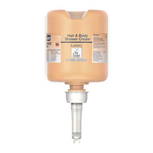 Гель для душа Tork класса люкс в мини-формате для волос и тела подарит вам уникальные ощущения благодаря формуле 3 в 1. Идеальное решение для отелей, спа-салонов и спортивных сооружений. Продукт содержит аргановое масло и представляет собой освежающий шампунь, кондиционер и увлажняющий кремообразный гель для душа. Он не только ухаживает за телом, но и бережно моет волосы, делая их мягкими и эластичными. Подходит для дозаторов мыла и дезинфицирующих средств Tork, которые сертифицированы как простые в использовании и обеспечивают высокий уровень гигиены рук для всех пользователей. 94% ингредиентов натурального происхождения Сократите время, затрачиваемое персоналом на уборку: сертифицированная простая заправка* менее чем за 10 секунд** Благодаря дополнительным ухаживающим компонентам и уникальному аромату обеспечивает роскошные ощущения от принятия душа. Протестировано дерматологически pH благоприятный для кожи Помогает обеспечить надлежащую гигиену: одноразовый герметичный флакон с новым дозатором помогает снизить риск заражения и защищает содержимое до самого использования. Сокращение отходов: самовсасывающий баллон сокращает отходы на 70%*** 3 в 1: шампунь, кондиционер и увлажняющий гель для душа Обогащен натуральным аргановым маслом, которое делает волосы и кожу мягкими и гладкими. Отзывы пользователей
