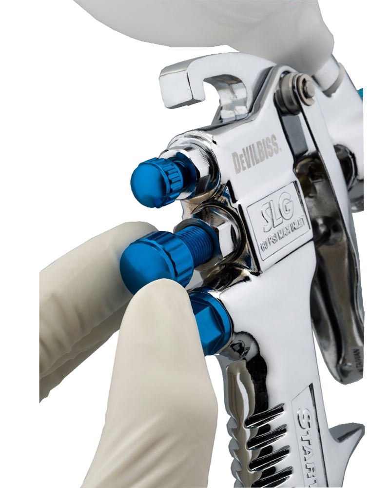 Новая модель профессионального краскопульта от компании DeVilbiss. Краскопульт DeVilbiss SLG-620 работает по системе TransTech (аналог LVLP). Сопло и игла выполнены из нержавеющей стали.