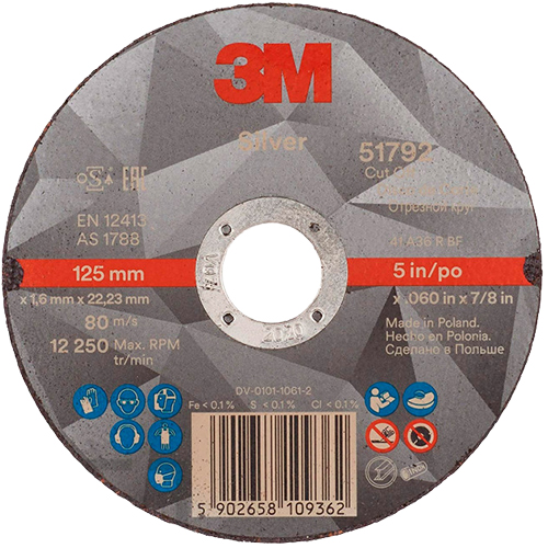 Отрезные круги 3M™ Silver с легендарным зерном точной формы 3M™ предназначены для резки любых углеродистых, легированных и нержавеющей сталей.
