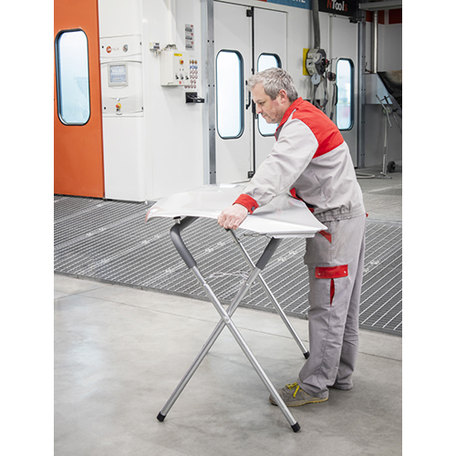 NTools UNI Stand это солидная подставка с регулируемым шагом, идеально подходит для работы в мастерских при обработке деталей кузова либо подготовке к замене стекол автомобиля. Поперечки защищены мягким покрытием из пенки EPE, которые смягчают удары и защищают елемент от повреждений. NTools UNI Stand дополнительно оснащен в резиновое крепление, позваляющее стабильно размещать элемент на подставке.