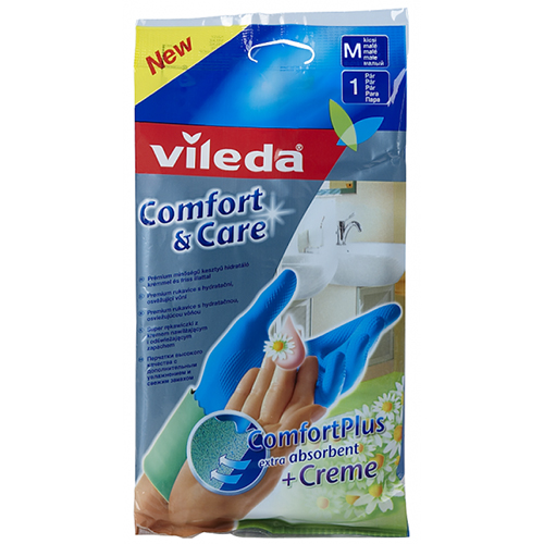 Перчатки пропитаны бальзамом с ромашкой размер M Comfort Plus Vileda (4023103073074)Артикул: 146263